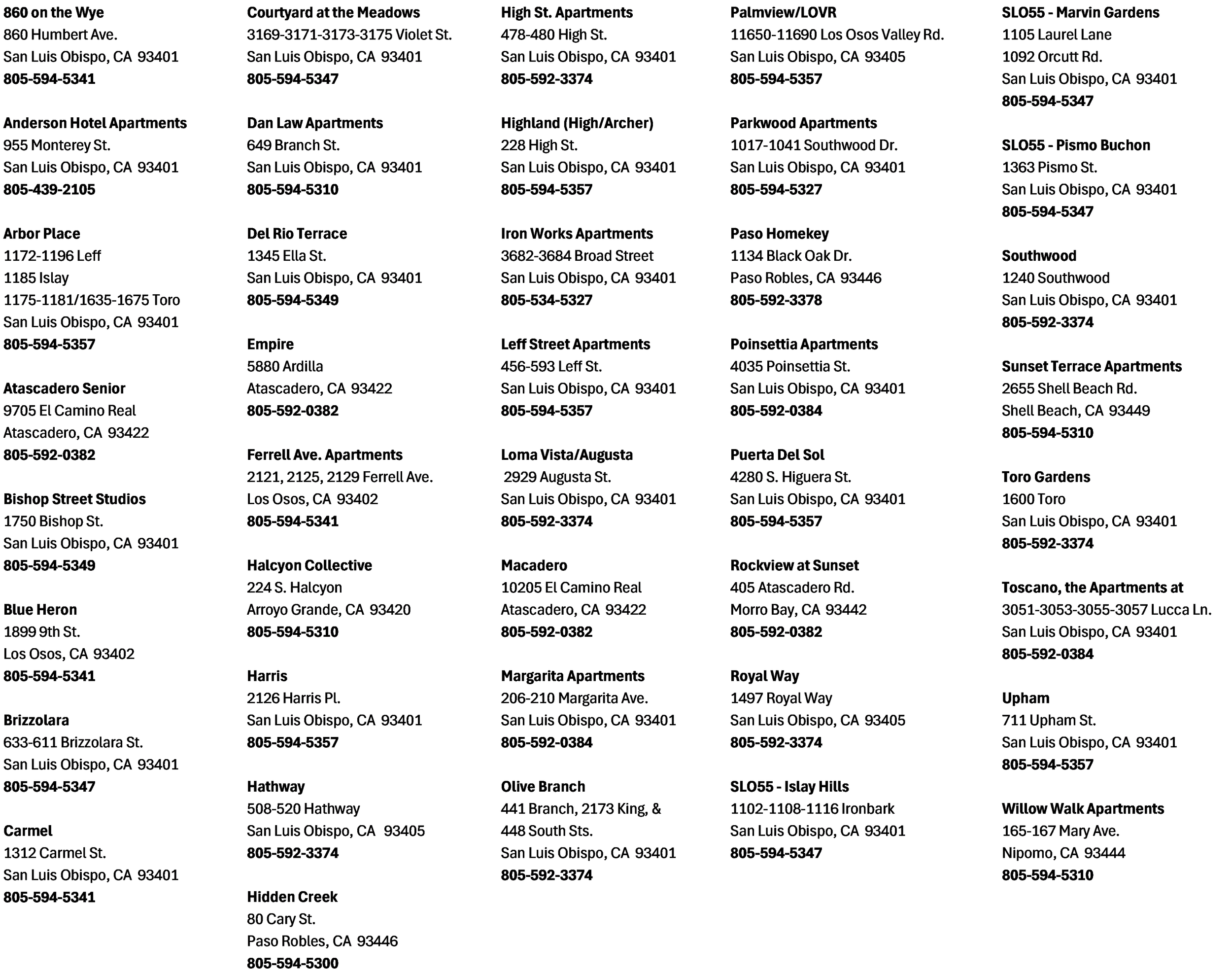 new after-hours emergency maintenance number for haslo-managed properties: 805-592-3400